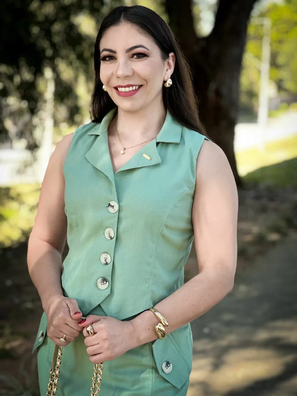Um conjunto de linho misto com colete e saia modelo sereia é uma escolha elegante e sofisticada. O colete com botões adiciona um toque clássico, enquanto a saia sereia com fenda frontal traz um elemento moderno e sedutor. O presponto em todo o conjunto acrescenta detalhes de acabamento que elevam ainda mais o estilo e a qualidade da peça. Juntos, esses elementos formam um conjunto versátil que pode ser usado em diversas ocasiões, desde eventos formais até encontros casuais mais refinados.